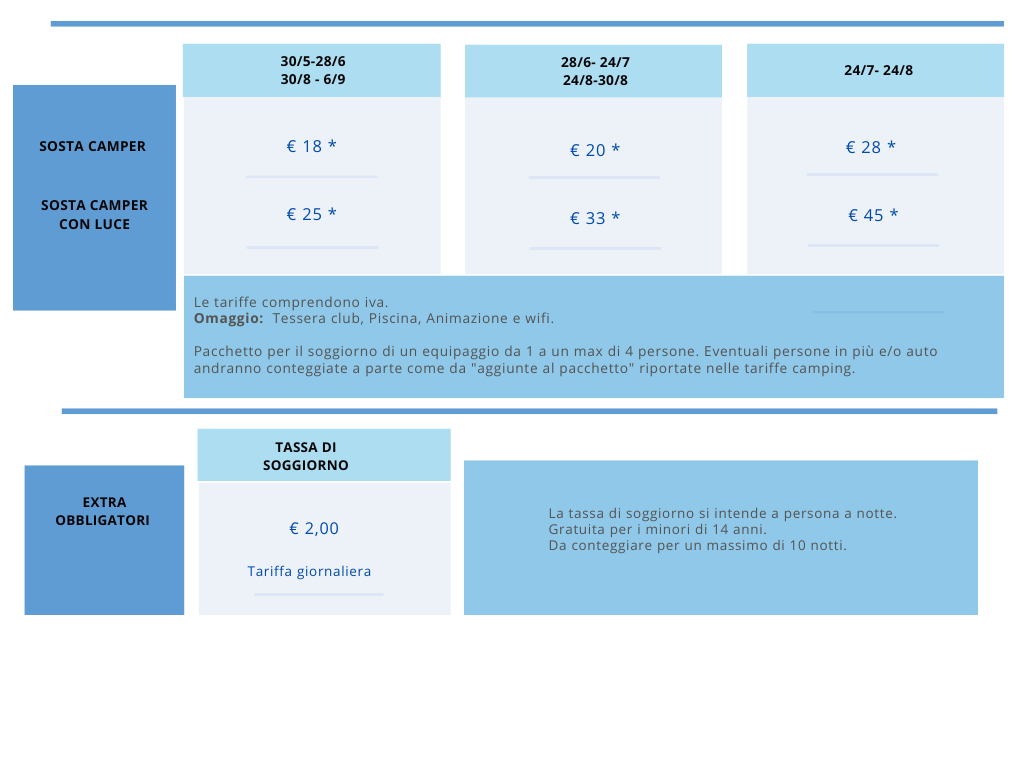 Sosta Camper, Sosta con Luce e Area Attrezzata